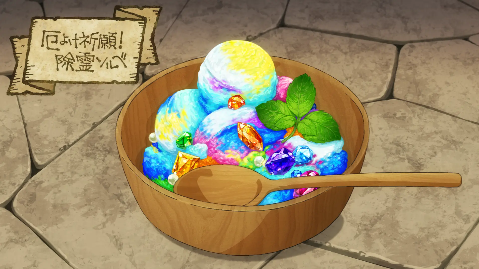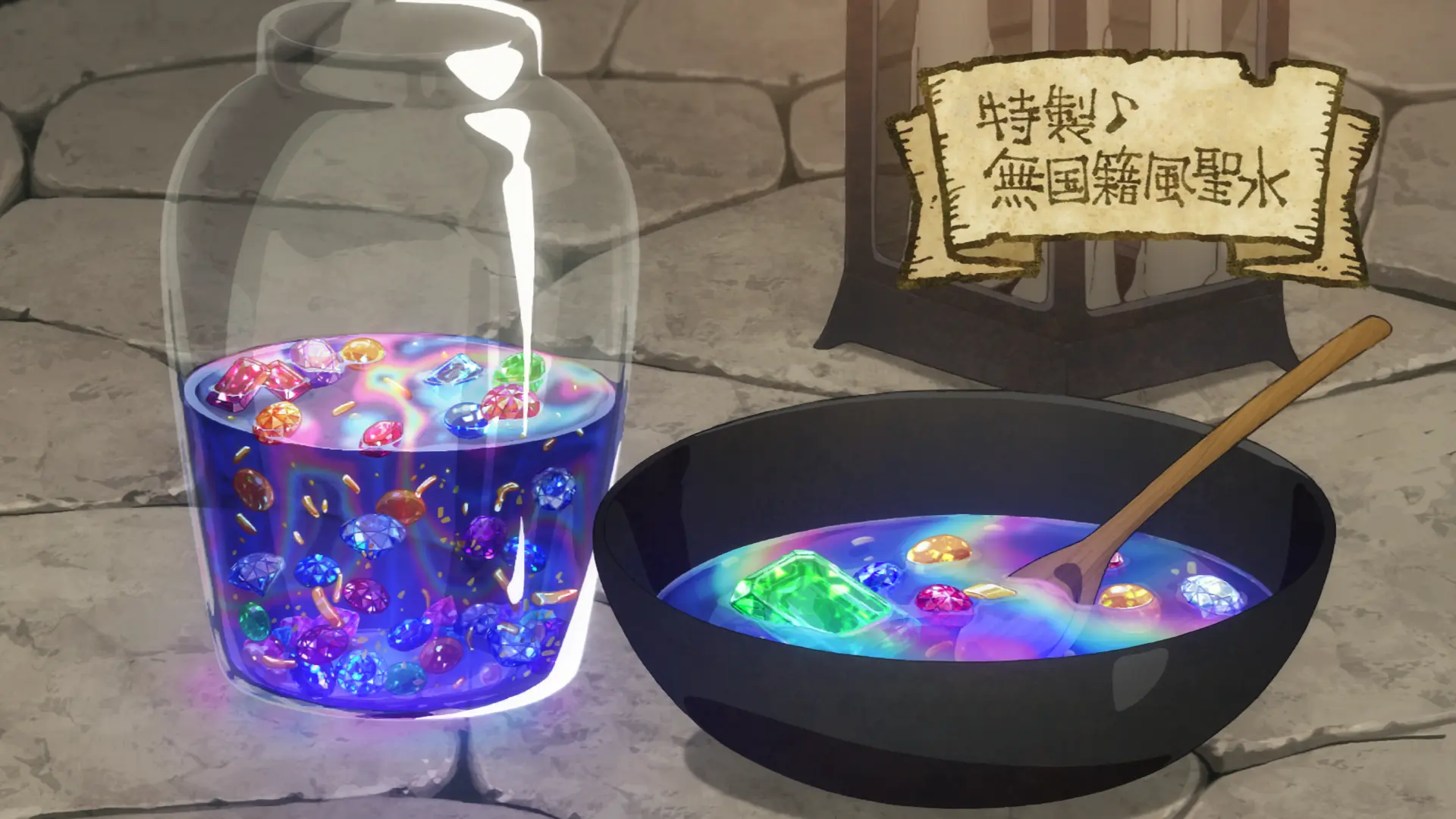 アイスゴーレムの欠片……適量 ハーピーの卵……1個 だし汁……450ミリリットル 醤油……大さじ1 塩……少々 夢魔……2個 マンドレイクの葉……1束 茸(未鑑定)……1個 シェイプシフターの肉……50グラム