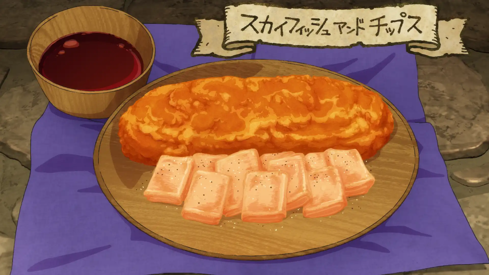 イヅツミが仕留めたゴーレムから取り出した魚を使った料理。魚を取り出す際に、アイルゴーレムを溶かした蒸気をサウナに利用し体を温めた。 捌いた魚の頭と骨はだしに利用している。
