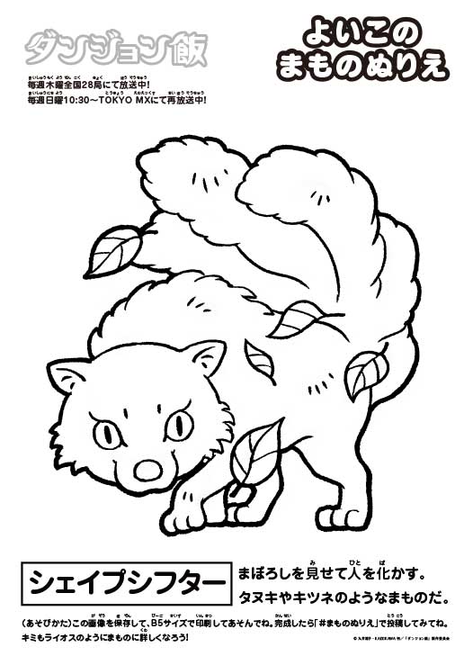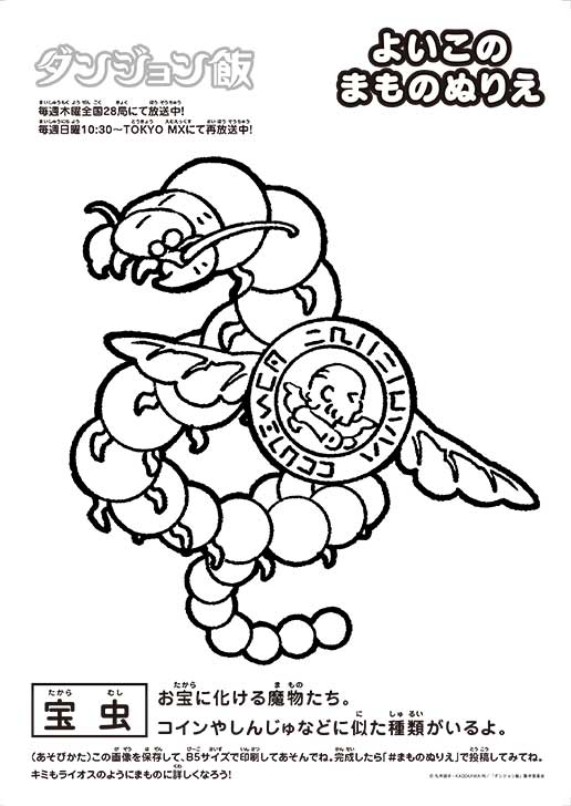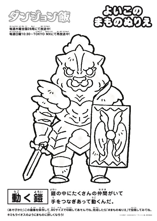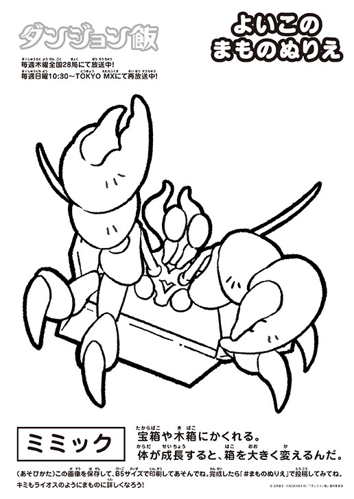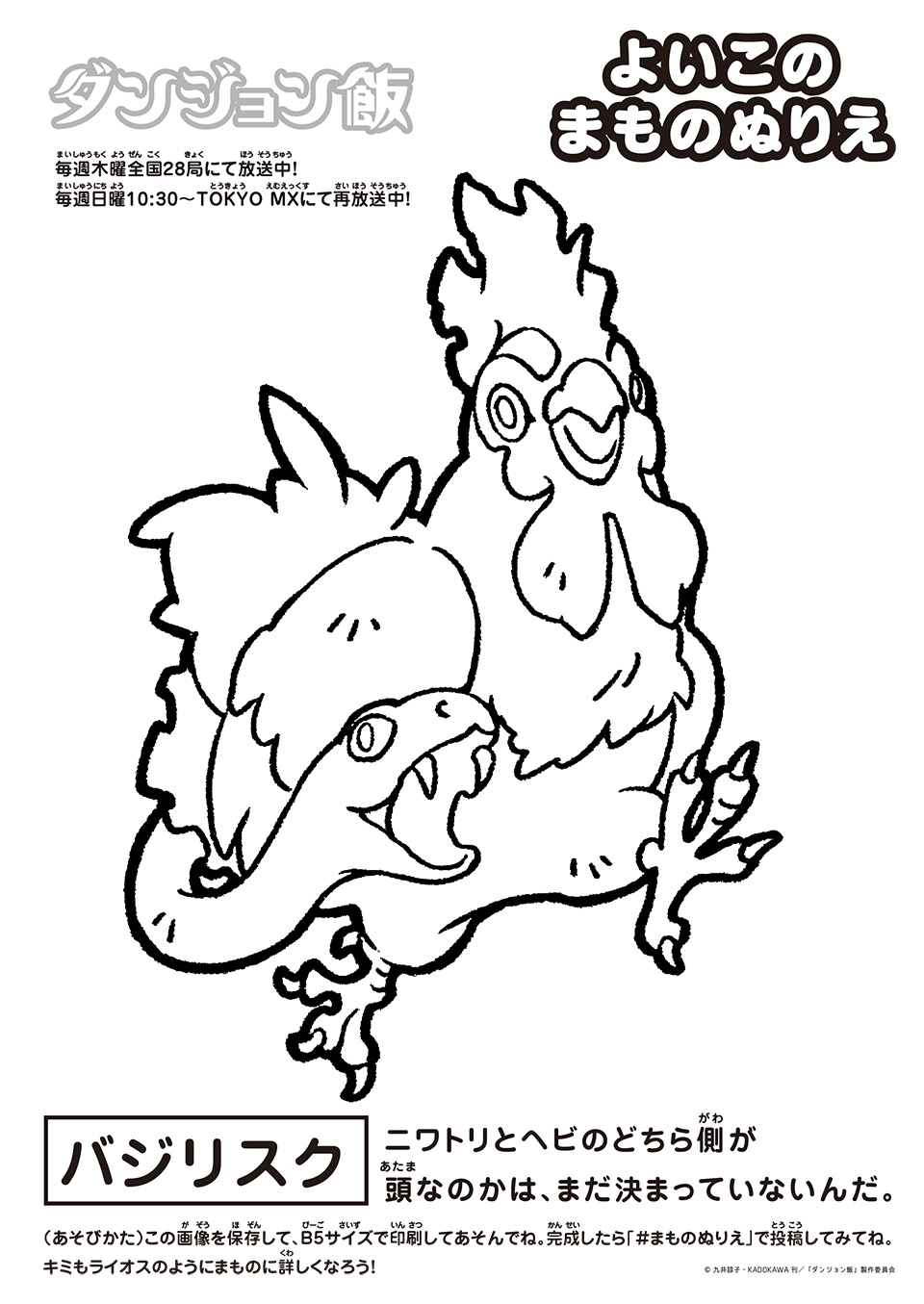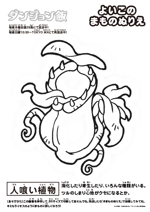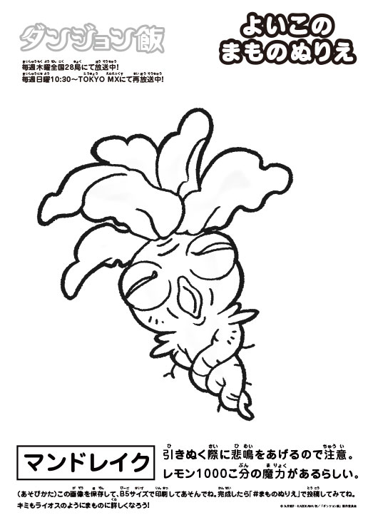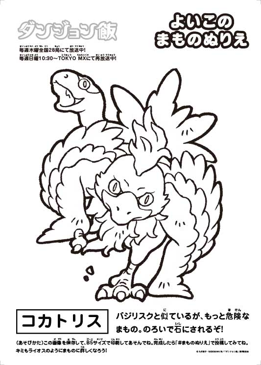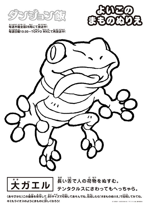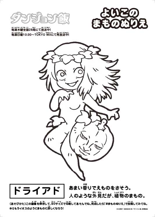 「よいこのまものぬりえ」 その01 「歩き茸」 ダウンロード その02 「バジリスク」 ダウンロード その03 「動く鎧」 ダウンロード その04 「ゴーレム」 ダウンロード その05 「宝虫」 ダウンロード その06 「ミミック」 ダウンロード その07 「クラーケン」 ダウンロード その08 「水棲馬」 ダウンロード その09 「テンタクルス」 ダウンロード その10 「大ガエル」 ダウンロード その11 「レッドドラゴン」 ダウンロード その12 「魚人」 ダウンロード その13 「幽霊」 ダウンロード その14 「シーサーペント」 ダウンロード その15 「ドライアド」 ダウンロード その16 「コカトリス」 ダウンロード その17 「ハーピー」 ダウンロード その18 「シェイプシフター」 ダウンロード その19 「スライム」 ダウンロード その20 「マンドレイク」 ダウンロード その21 「人喰い植物」 ダウンロード その22 「大サソリ」 ダウンロード その23 「大蝙蝠」 ダウンロード その24 「人魚」 ダウンロード